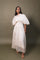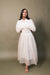 Ivory dress in self-lined fabric, featuring elegant cape sleeves, button accents on the bodice, and a pleated skirt for a sophisticated, structured silhouette. COLOUR:IvoryFABRIC:Pure Chanderi EMBELLISHMENTS:Ivory self-lined fabric with flowing cape sleeves for a structured yet elegant silhouette. SLEEVE TYPE:Elbow...