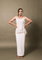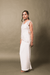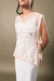 Sheer beige organza top adorned with a mix of handcrafted and embroidered white patterns, creating an elegant and delicate finish.